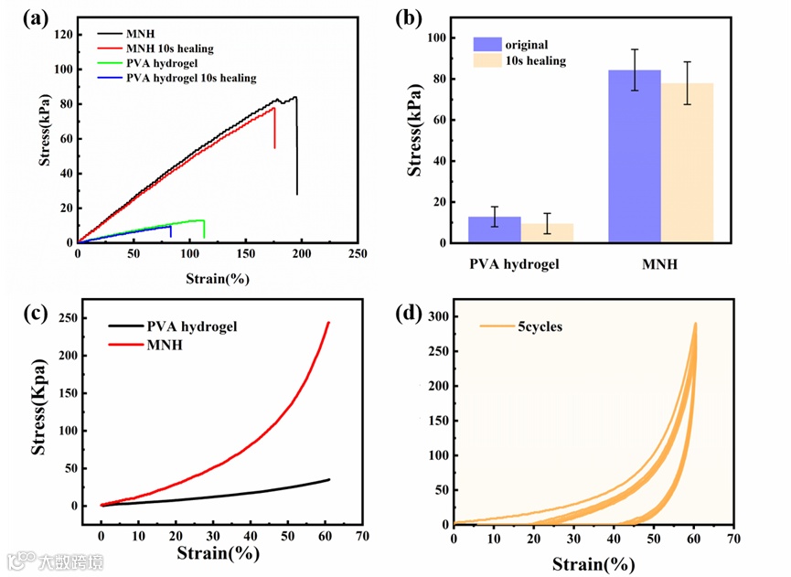 此外,MXene水凝胶具有较高的抗压强度,在60%的应变下不会断裂。压缩循环试验表明,它具有优良的抗疲劳性能。