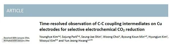 Time-resolved observation of C-C coupling intermediates on Cu electrodes for selective electrochemical CO2 reduction. (Energy Environ. Sci., 2020, DOI: 10.1039/D0EE01690J)