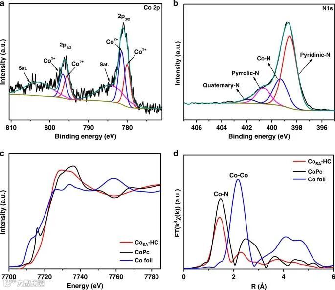 图3 CoSA-HC催化剂的结构表征:(a、b)XPS谱图;(c、d)XANES及EXAFS谱图
