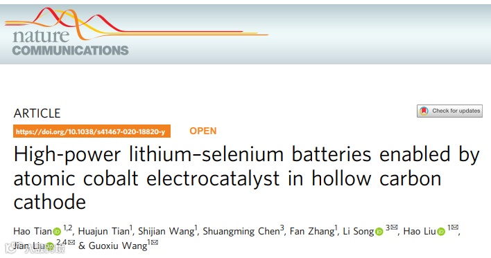 题目:High-power lithium–selenium batteries enabled by atomic cobalt electrocatalyst in hollow carbon cathode