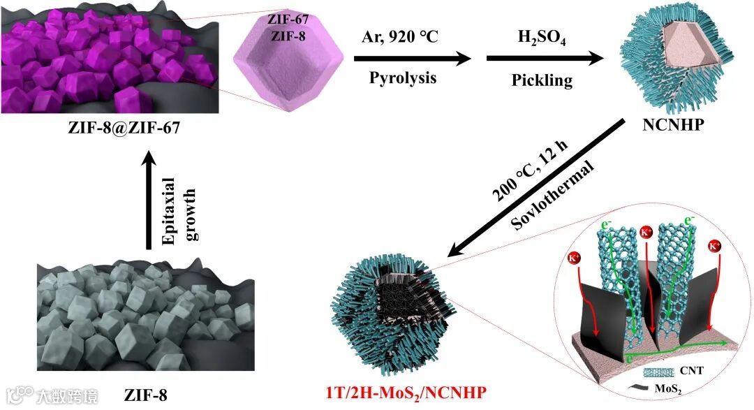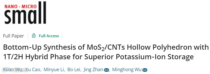 上海大学|吴明红教授课题组Small:自下而上合成1T/2H杂化相MoS2/CNTs中空多面体设计助力高性能钾离子电池负极