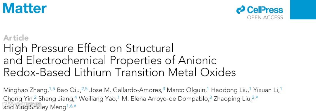 近日,加州大学圣地亚哥分校孟颖研究团队和中科院宁波材料所刘兆平研究团队再次联手在国际知名期刊Matter上发表题为“High Pressure Effect on Structural and Electrochemical Properties of Anionic Redox-Based Lithium Transition Metal Oxides”的研究论文,揭示了富锂材料的结构柔韧性,即在压力下表现出负压缩性和结构有序化。