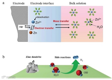 Zn负极沉积/剥离过程反应示意图