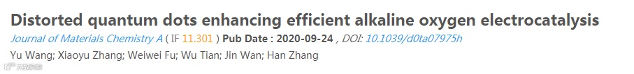 近日,来自重庆大学的王煜教授与张瀚老师合作,在国际知名期刊Journal of Materials Chemistry A(影响因子:11.301)上发表题为“Distorted quantum dots enhancing efficient alkaline oxygen electrocatalysis”的研究工作。