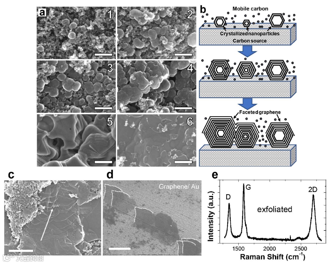 石墨烯是一种完全由sp2杂化碳原子构成的厚度仅为单原子层或数个单原子层的准二维薄片晶体材料。由于稳定的碳-碳共价键合和sp2杂化,石墨烯具有高载流子迁移率、导热性、和机械强度等优良性能。石墨烯通常通过化学自上而下方法合成。自上而下的方法通常是先从大块石墨开始,然后通过机械或化学过程将其剥落成薄片。自下而上的石墨烯生长通常采用化学气相沉积(CVD)的方法进行,适用于单层或多层石墨烯薄膜的生长。然而,由CVD生长的石墨烯产率都比较低,对于石墨烯批量化生产,CVD生长显然不是一种合适的方法。为解决石墨烯产率低的问题,Duy X. Luong等人(Nature577, 647–651 (2020))通过廉价的焦耳热闪蒸技术可以将任何碳源,无论是石油焦碳、煤炭、轮胎还是塑料垃圾,统统在不到100毫秒的时间内变成克级石墨烯!但闪蒸石墨烯具体的晶体组成和微结构还有待人们进一步研究。