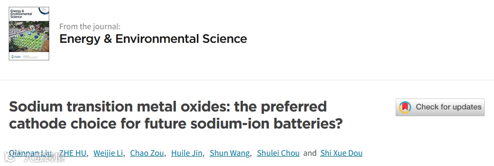近日,温州大学王舜教授与澳大利亚伍伦贡大学侴术雷教授等合作。在国际期刊 Energy & Environmental Science 上发表题为“Sodium transition metal oxides: the preferred c athode choice for future sodium-ion batteries?”的研究工作。