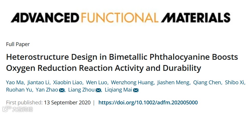 赵焱教授/周亮教授/麦立强教授AFM:双金属酞菁异质结构设计提高氧还原反应的活性和耐久性