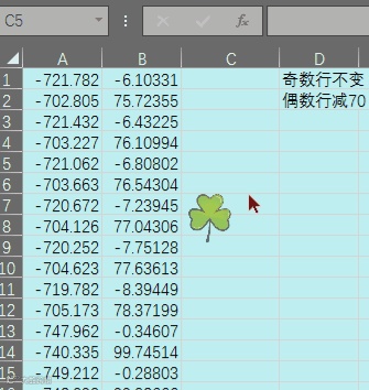 这种填充公式的方式是按照第1行、第2行公式交替的形式向下填充的。这样可以实现奇数行不变,偶数行-70的目的。
