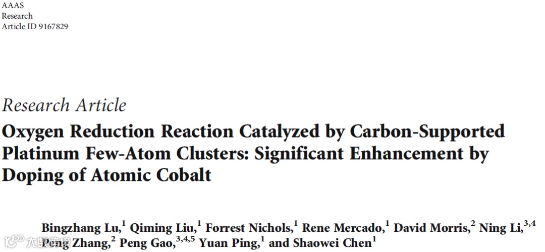 陈少伟教授《Research》碳基铂寡原子团簇氧还原催化剂:显著的钴原子增强作用 科学材料站