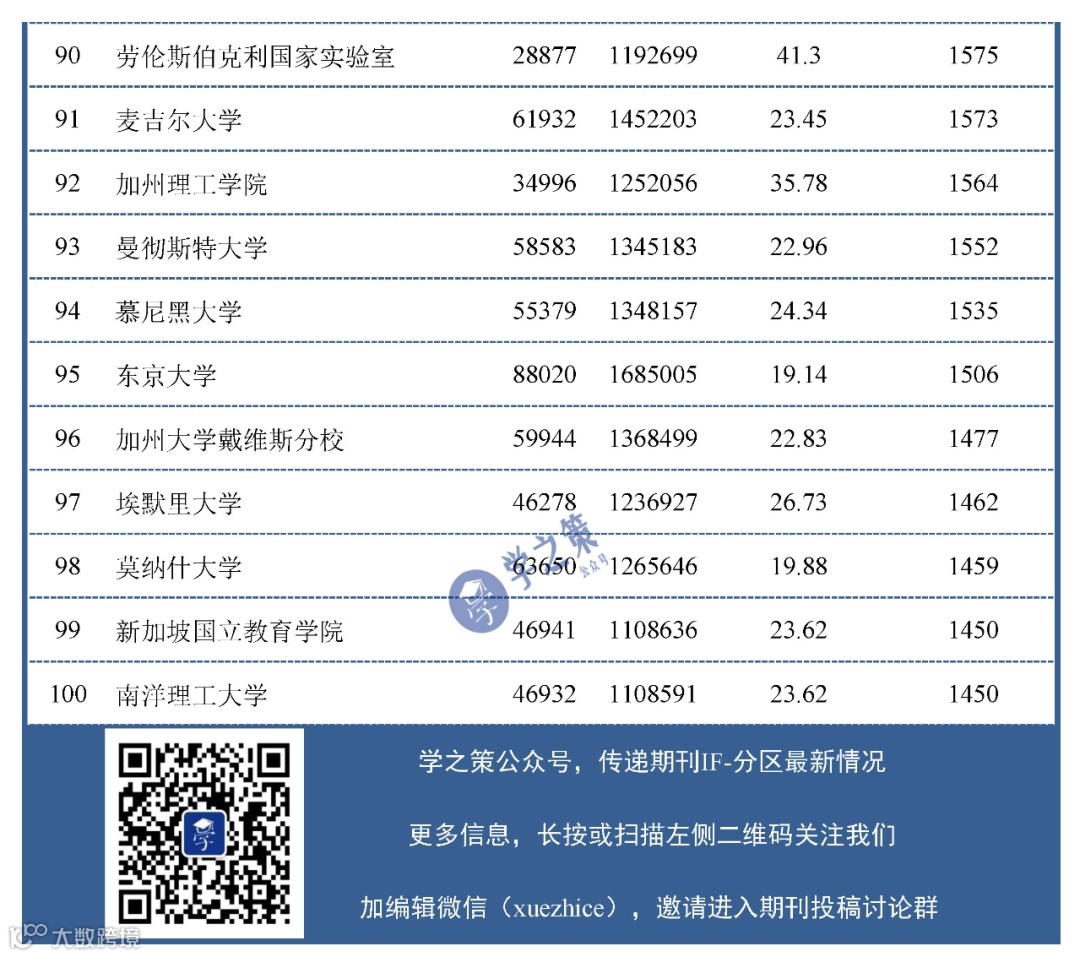 哈佛大学以10191篇排名第二,中科院以8043篇排名第三。论及下属机构之多,中科院显然比加州大学更为庞大,但是在前100的名单中并无中科院下属机构进入。