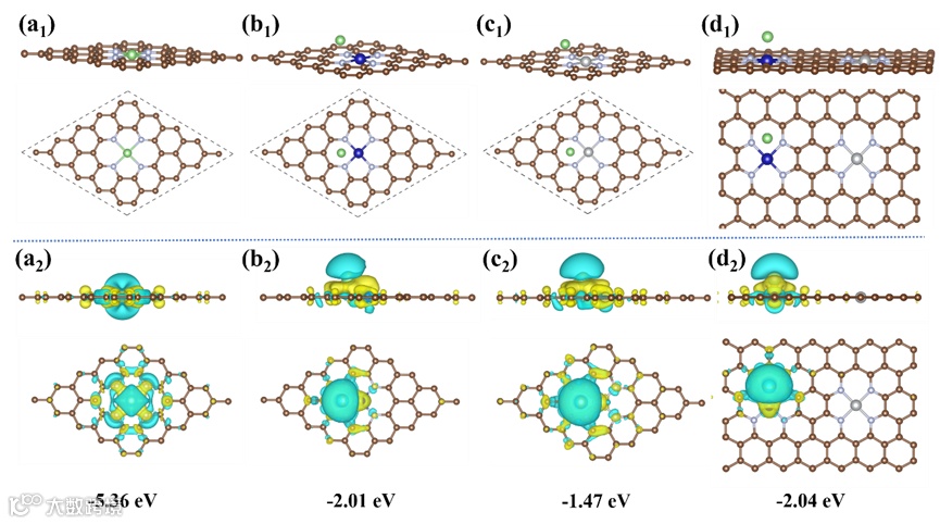 图3 MOFs衍生的氮掺杂超级碳负极材料(N-C@Co/Ni HDNCs)的理论计算结果