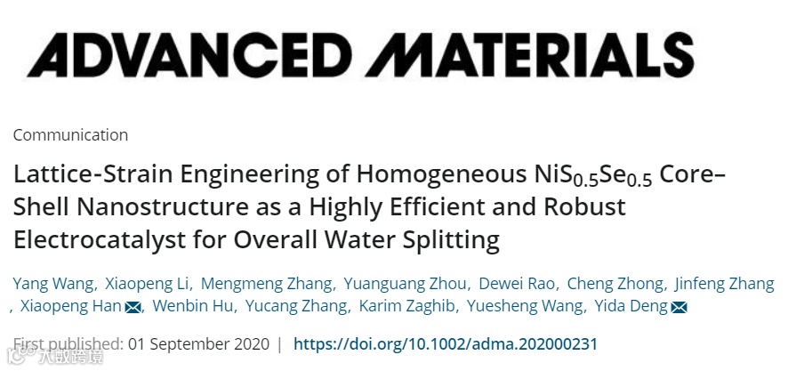 韩晓鹏,邓意达教授AM:一种均匀的NiS0.5Se0.5核壳纳米结构的晶格应变工程作为高效和强劲的全分解水电催化剂 科学材料站