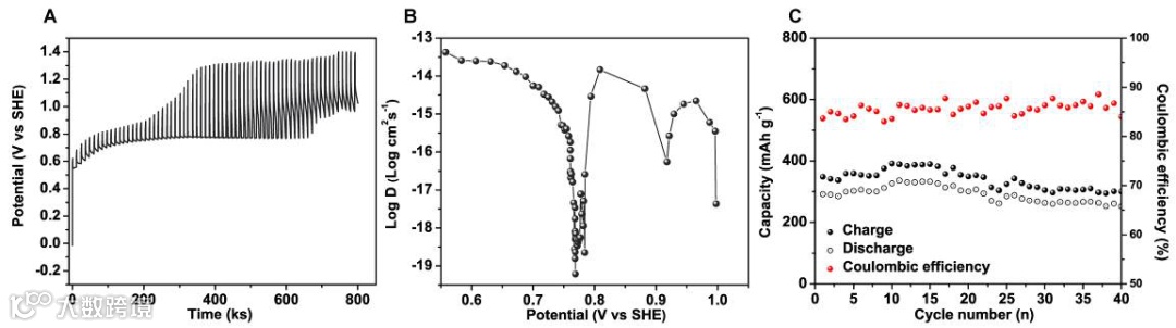 图四. 石墨电极在CZI电解液中的GITT和循环图。