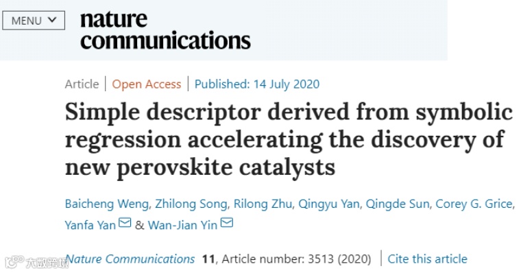 符号回归得到的简单描述子加速钙钛矿催化剂的发现