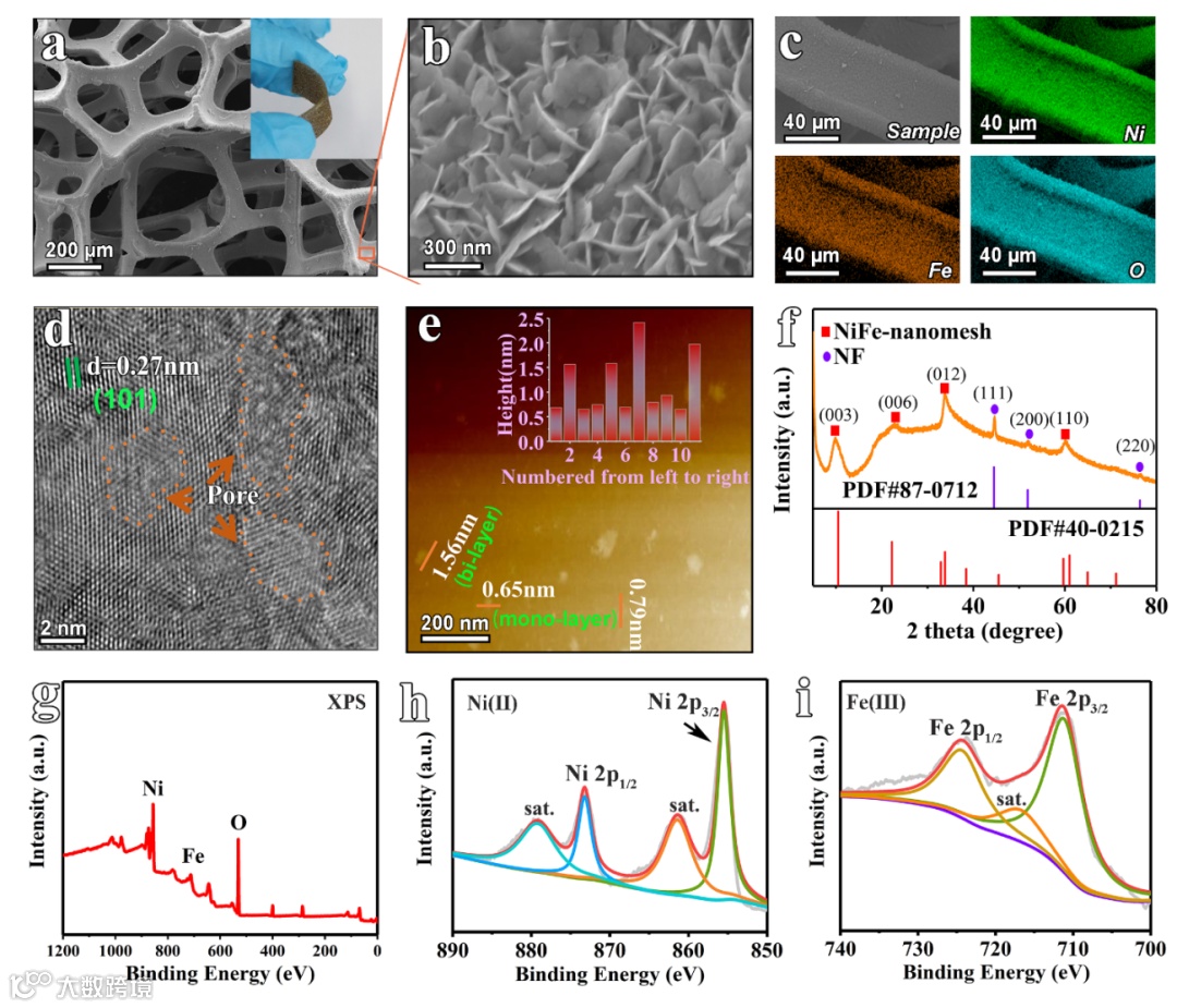 图1.NiFe-nanomesh array的结构与形貌表征。