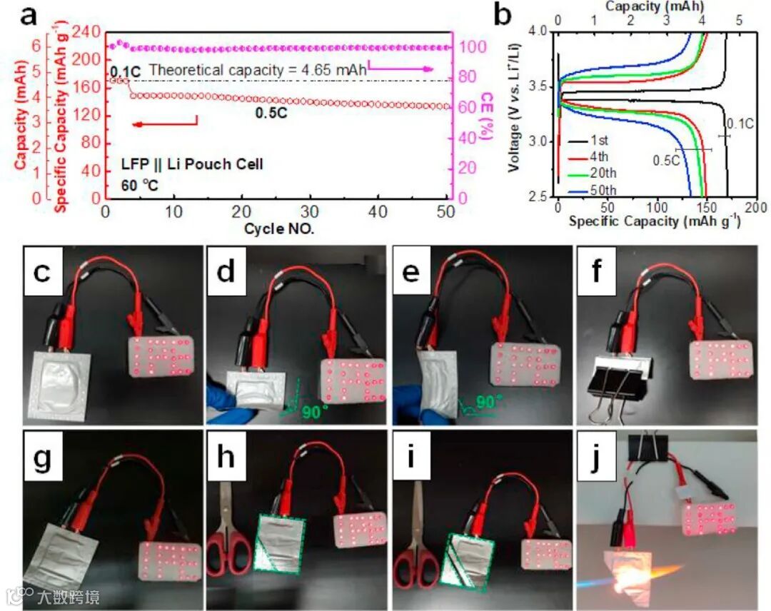 此外,LFP||DLPE||Li软包电池在高温和极端条件下(如折叠和烧制)均表现出良好的循环性能。该工作为通过聚合物电解质的功能设计来实现高性能聚合物基锂金属电池提供了一种新的途径。