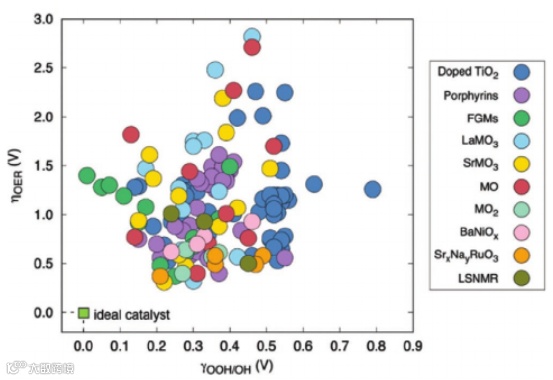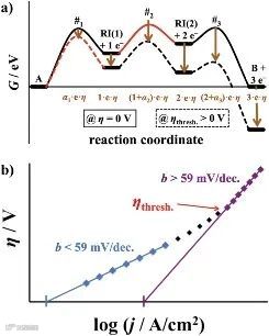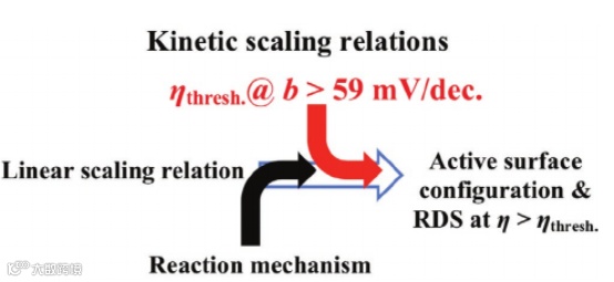 作者在这篇进展报告中,除了打破线性标度关系的概念外,还总结了用于析氧反应(OER)的电极材料筛选的最新趋势。这包括O p带中心作为碱性OER中的活动描述图,线性标度关系扩展到动力学标度关系,火山图到过电位相关火山图,用电化学阶跃对称指数代替热力学过电位,以及在整体框架内结合结合能、动力学、过电位和催化对称性的统一方法进行材料筛选。