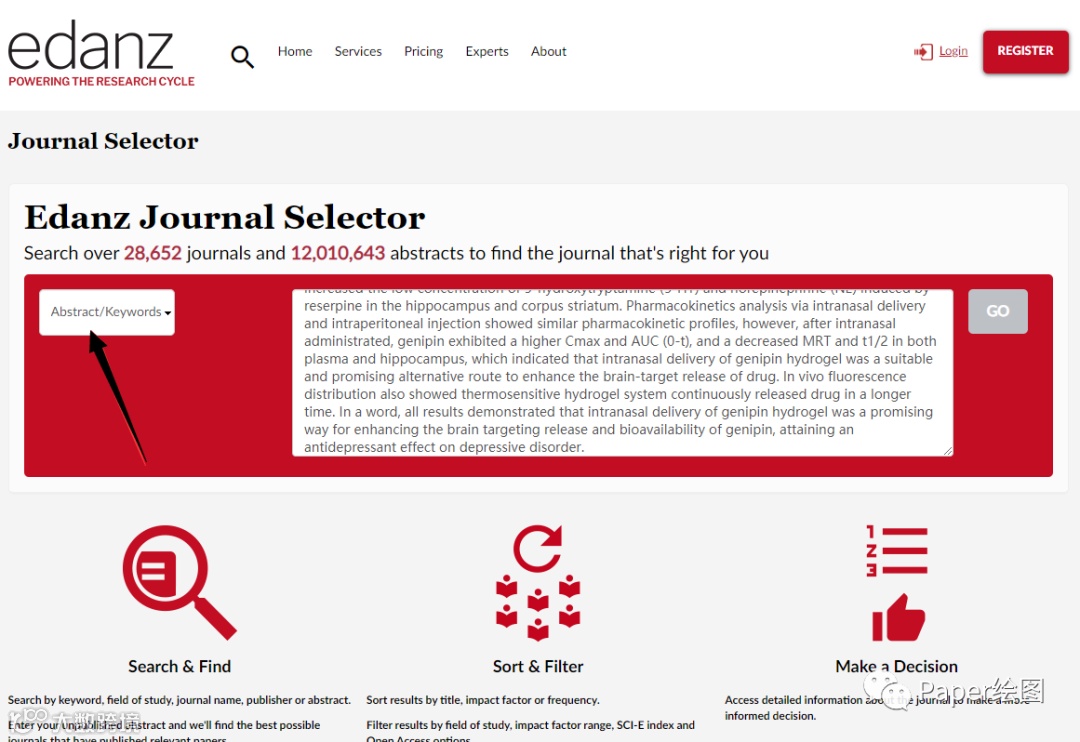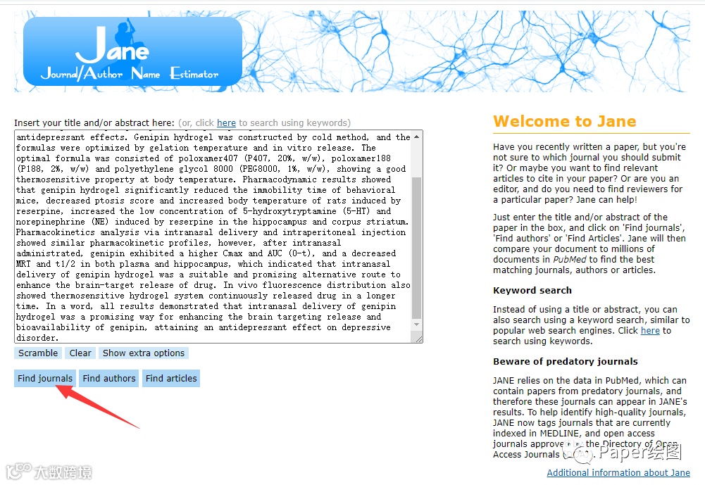 1. 输入摘要,点击查找期刊