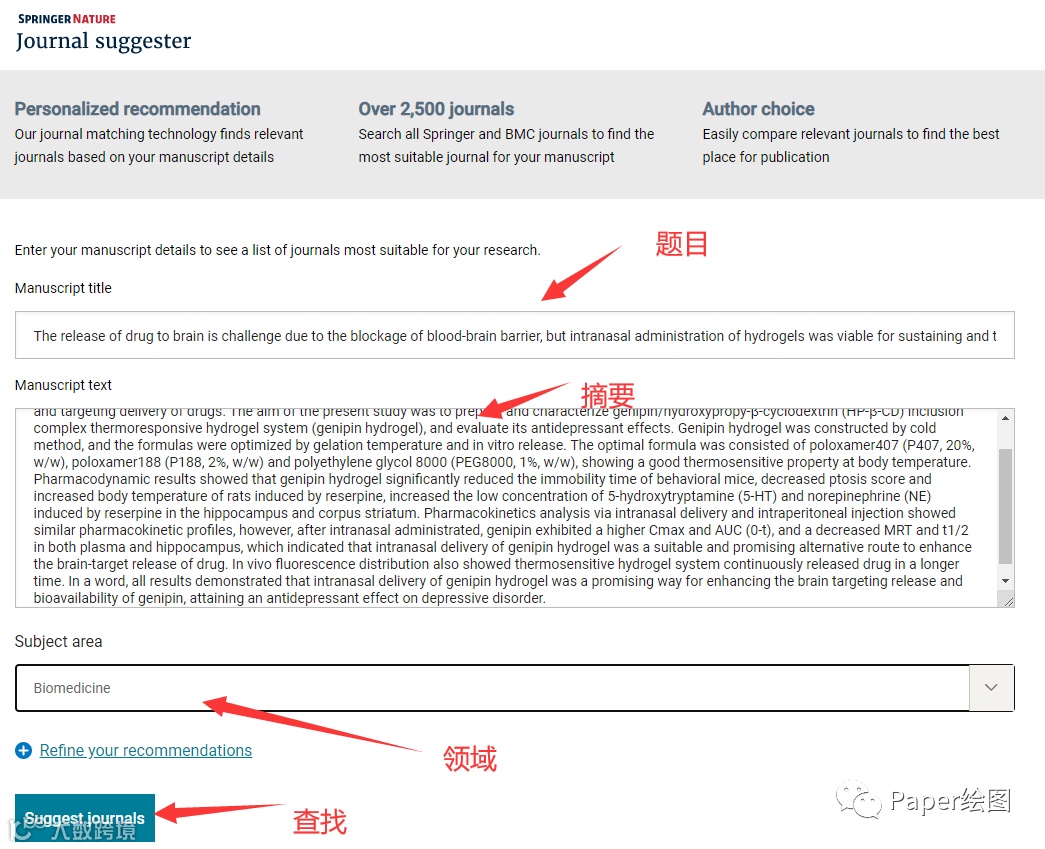 1. 直接输入题目,摘要,领域
