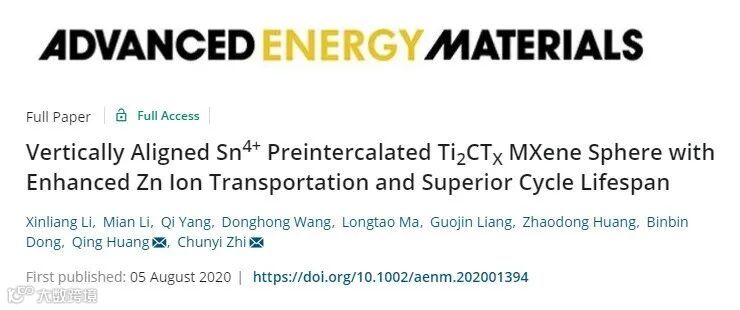 近日,香港城市大学支春义教授、中国科学院宁波材料技术与工程研究所黄庆研究员课题组在国际顶级期刊Advanced Energy Materials上发表题为“Vertically Aligned Sn4+ Preintercalated Ti2CTX MXene Sphere with Enhanced Zn Ion Transportation and Superior Cycle Lifespan”的研究工作。