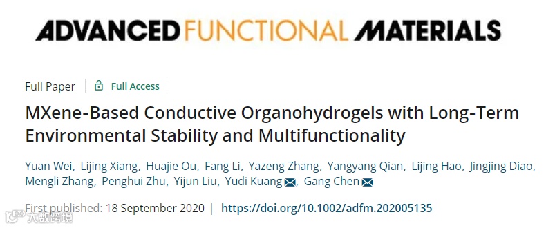 Yuan Wei, et al., MXene‐Based Conductive Organohydrogels with Long‐Term Environmental Stability and Multifunctionality, Adv. Funct. Mater. 2020, 202005135.