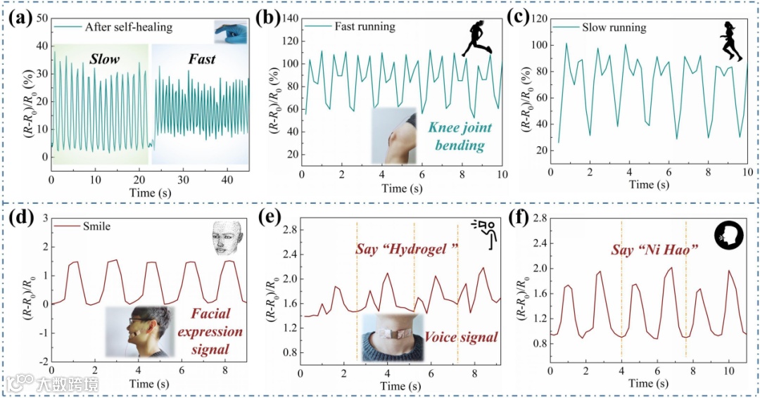 图6. PTCM-Gly有机水凝胶应用于人体生理信号监测。