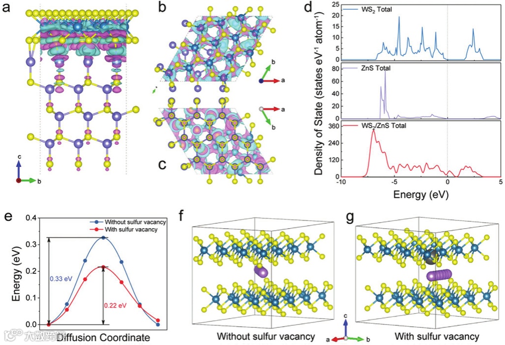 图5 DFT计算证明硫空位和异质结构对提高电化学性能的重要性
