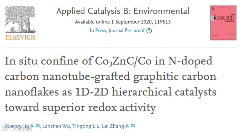 In situ confine of Co3ZnC/Co in N-doped carbon nanotube-grafted graphitic carbon nanoflakes as 1D-2D hierarchical catalysts toward superior redox activity(Applied CatalysisB:Environmental,2020,https://doi.org/10.1016/j.apcatb.2020.119513)https://www.sciencedirect.com/science/article/pii/S0926337320309280