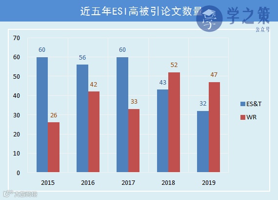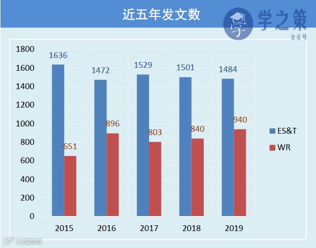 从各个领域的数据指标来看,WR基本已经实现了对ES&T的全面超越。但这也是和两者各自的运营方式、发文规模和文章领域有关。近年来国人在WR上的发文量要高于ES&T,但差距并不明显,因此发表难度差别不是很大。