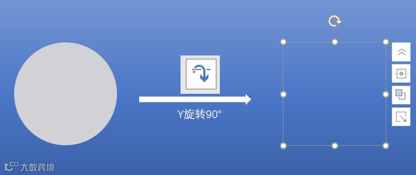 我们先插入一个正圆形,在设置形状格式中找到三维旋转,Y旋转90°,圆形会转到垂直于屏幕的方向。因为没有厚度,所以看上去好像消失了。