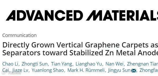 基于以上现状,苏州大学能源学院、苏州大学—北京石墨烯研究院协同创新中心的孙靖宇教授团队在国际知名期刊Advanced Materials上发表题为“Directly Grown Vertical Graphene Carpets as Janus Separators toward Stabilized Zn Metal Anodes”的论文。