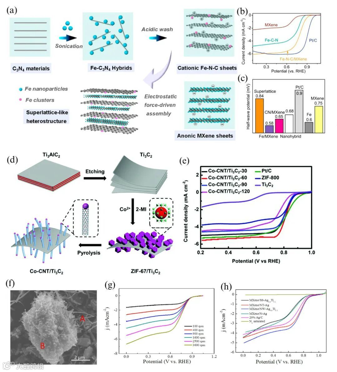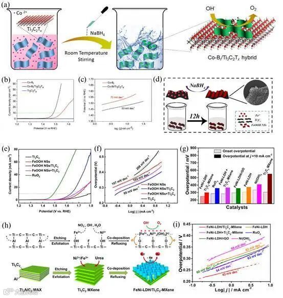 Ⅲ)复合材料协同催化;MXenes是复合材料的优异的导电增强剂,显示出强大的界面耦合和快速的电荷转移动力学,可有效增强复合材料的电化学性能。
