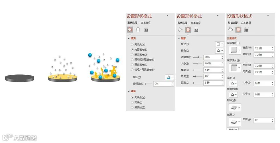 三维格式:深度-自动,大小-10磅,材料-暖色粗糙,光源-对比,具体参数详见下图;