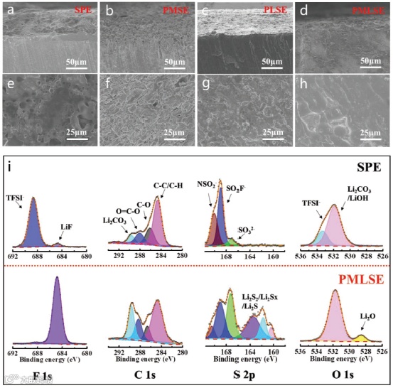 图2对比了使用不同电解质的Li/Li对称电池在循环后的电极形貌特征。可以发现,具有高离子导、高浓度锂盐和独特孔道结构的复合凝胶可以促进以LiF和有机-无机硫化物为主导成分的致密SEI层的形成。