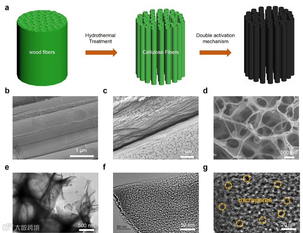 f,g 具有丰富微孔结构的DACFs的高分辨率TEM图像。