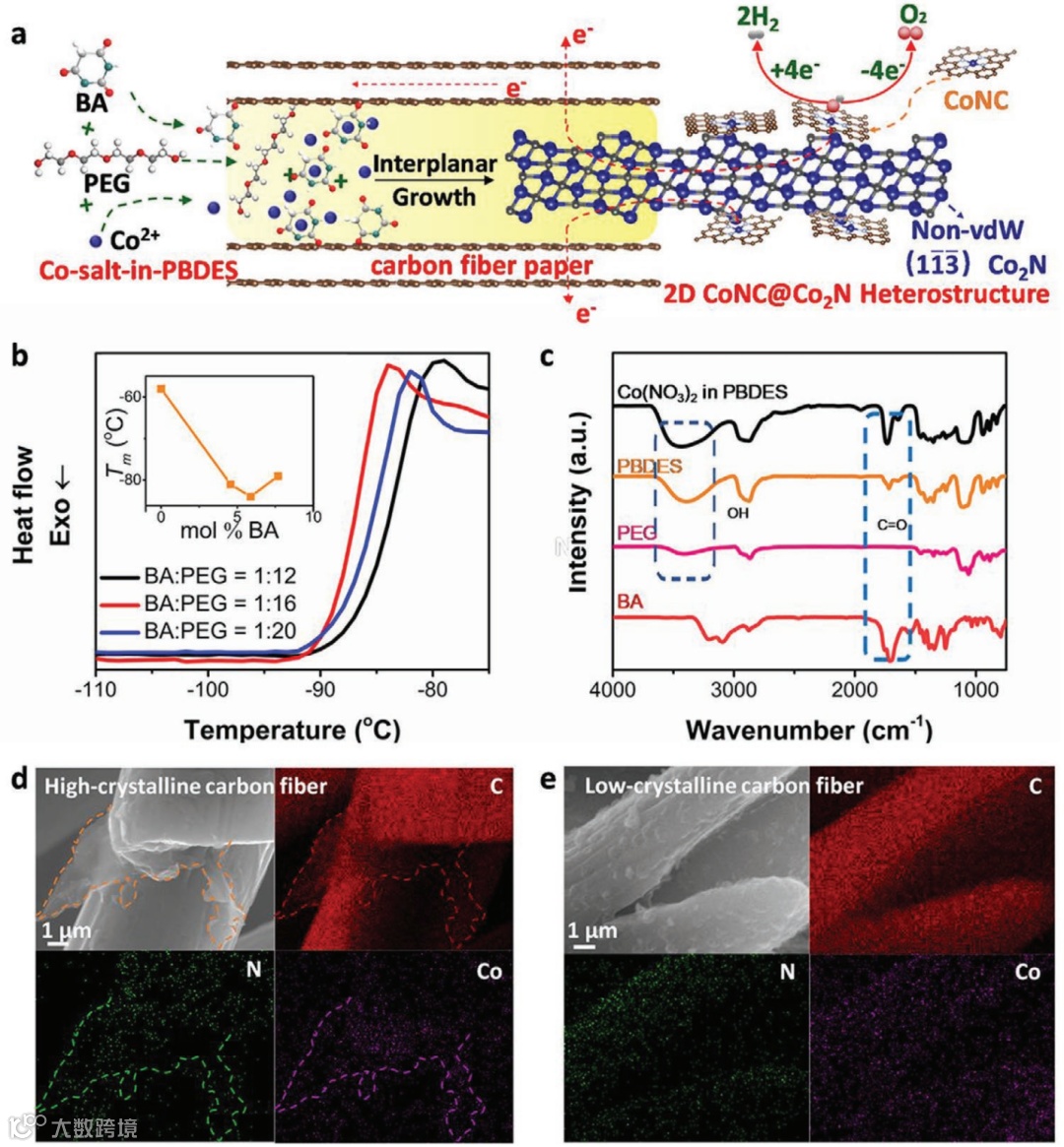 二维非vdW Co2N基异质结构的平面间生长,以实现高效的全水分解