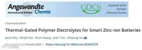 文章链接:Thermal‐Gated Polymer Electrolytes for Smart Zinc‐Ion Batterieshttps://onlinelibrary.wiley.com/doi/10.1002/anie.202007274 导师简介: 牛志强 研究员南开大学化学学院特聘研究员,博士研究生导师,南开大学"百名青年学科带头人";2010年毕业于中国科学院物理研究所(导师:解思深院士,周维亚研究员),2010年-2014年在新加坡南洋理工大学材料科学与工程学院从事博士后研究,2014年通过南开大学"人才特区"入职南开大学化学学院,加入天津化学化工协同创新中心"微纳结构与高能化学电源"团队、先进能源材料化学教育部重点实验室;在碳纳米材料的可控组装、功能化及新型储能器件的设计组装方面取得了一系列创新性研究成果,受到国内外同行广泛关注;近年来,在Advanced Materials, Energy & Environmental Science,Advanced Functional Material, Small等国际期刊发表论文近40篇,总引用次数700多次,H-index为13;申请多项美国及中国专利,以第一作者参与编写多部英文著作章节;其部分研究成果被Advanced Materials等期刊编辑部选作封面和热点文章进行推荐,并被中国科学报、Chemistry World、Nanowerk、Material Views China等国内外知名媒体网站作为研究亮点进行报道或转载。