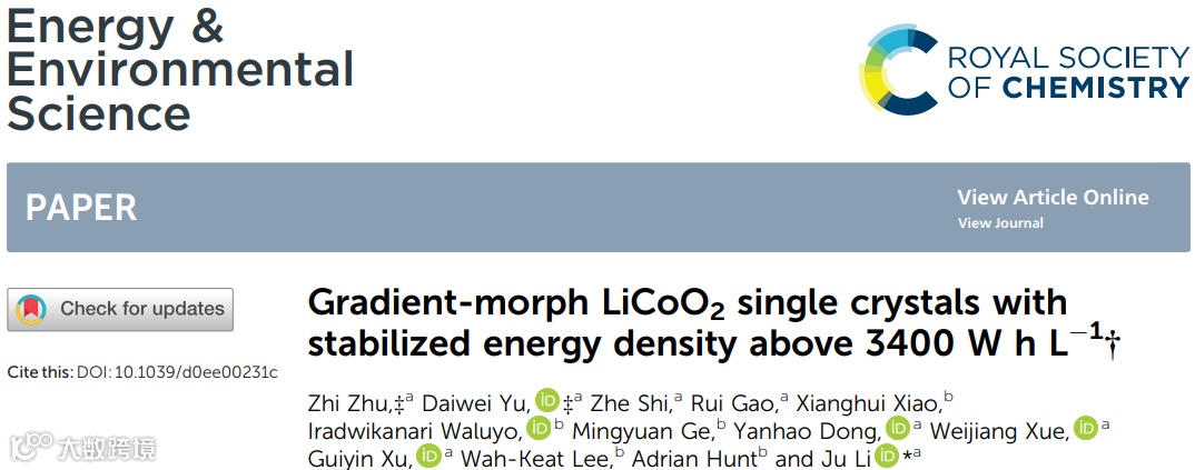 能量密度稳定在3400 W h L−1以上的梯度型钴酸锂单晶正极材料
