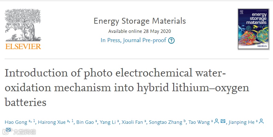 近日,南京航空航天大学何建平教授课题组在国际知名期刊Energy Storage Materials(2019即时影响因子:16.86)上发表题为“Introduction of photo electrochemical water-oxidation mechanism into hybrid lithium–oxygen batteries”的研究工作。该工作将传统的光电水氧化过程与锂-氧电池相互交叉融合,提出了高工作电位与高能量效率的新型光辅助电池体系。该文章第一作者为博士研究生龚浩和薛海荣博士,王涛副研究员为共同通讯。