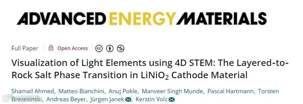 用4D-STEM可视化轻元素:LiNiO2正极材料的层状岩盐相变