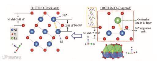 由于对更高效储能的需求不断增加,人们对改进当前的锂离子电池(LIB)技术有着相当大的兴趣。富镍层状NCM(LiNi1-x-y CoxMnyO2)和NCA(LiNi1-x-y CoxAly O2)x+y<0.3的正极活性材料(CAMs)因其比常规LiCoO2(LCO)具有更高的实际比容量而得到了广泛的研究。 LiNiO2(LNO)具有超越NCM和NCA的潜力并且比LCO更具成本效益。不幸的是,LNO在电化学循环过程中容量迅速衰减。人们已经确定了其中几个原因,然而,这种降解的主要原因在于晶体结构在低锂含量下不可逆地转变为类似岩盐的结构,特别是在粒子表面。到目前为止,人们的共识是材料中的O2(g)和Li2O会流失,随着随后的镍还原和LiyNi1-yO类岩盐相的形成,由于缺乏能够以高对比度成像不同相中所有元素的原子分辨技术,因此对这种相变的详细机制理解缺失。人们大多认为,层状和岩盐区域之间可能存在“尖晶石样”或“无序尖晶石”区域;然而,强有力的实验证据并不多见。