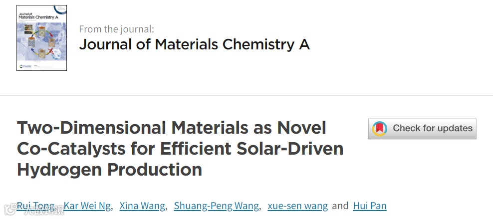 澳门大学JMCA:二维材料作为新型助催化剂用于高效太阳能制氢 科学材料站