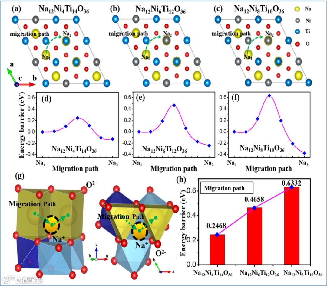 (h) Comparison of energy barriers when Na+ migrates in different models.