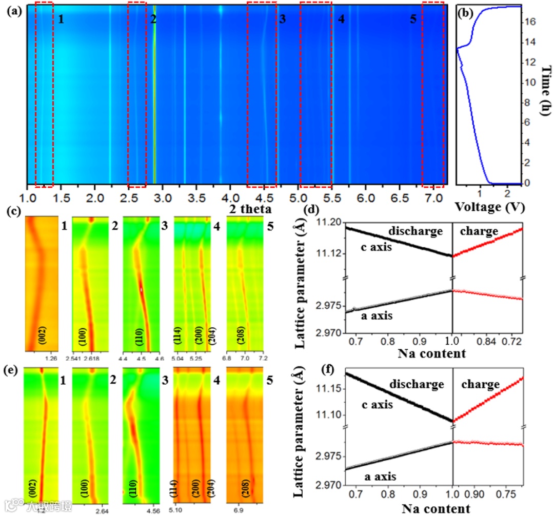 (a) In-situ HEXRD patterns collected during the first cycle with voltage range of 0.15-2.5V at 0.1C rate.