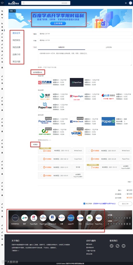 论文查重这个功能同样也是百度学术的一个亮点,一般也就是毕业大论文有重复率这个要求,百度学术为提供了 11 家查重通道,比较靠谱的还是万方和 PaperPass。