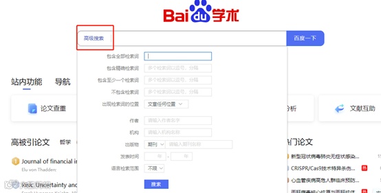 查找科研文献,还是在搜索栏输入关键字,也可以使用高级搜索,查找更精准。