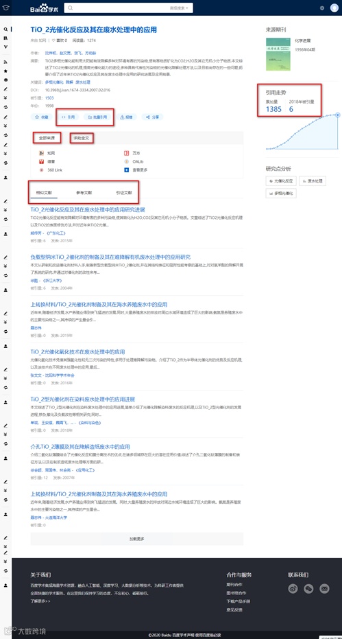 找到对应的文献打开,里面的信息量也很多,不仅可以查找期刊文献的来源,并查看资料的全网免费下载源。另外还有更多关联度较高的文献推送。