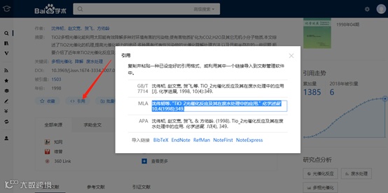 如果说你写大论文需要引用这篇文章,直接点击引用,复制相应的格式导入即可。