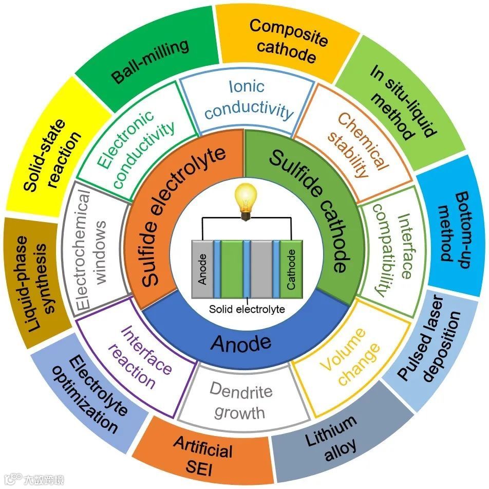 综上,尽管仍有许多挑战需要克服,基于硫化物电解质的全固态锂电池仍是下一代高安全性和高能量密度二次电池的研究热点。事实上,仅单一采用一种方法,例如只提高电解质的电导率或电极容量,亦或增加界面稳定性,均不能从根本上解决全固态锂电池所面临的问题,实际中往往需要综合各种方法以获得综合性能优良的全固态锂电池。
