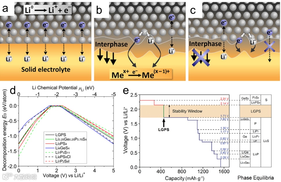 (d) 硫化物电解质分解所需的能量与施加电压的关系。